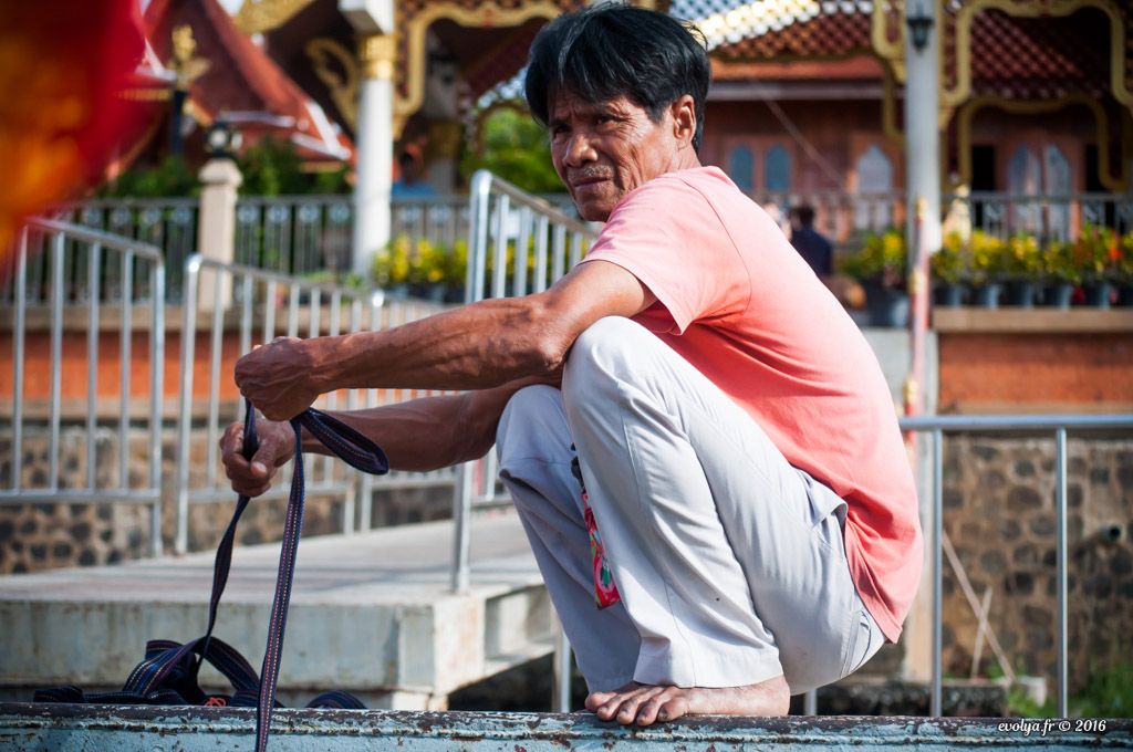 Nous avons aussi assisté à un match amateur de Sepak takraw. C’est sport très répandu en Asie, cela ressemble à du volley-ball mais qui se joue avec les pieds et une petite balle en rotin tressé. Les gars font des retournées acrobatiques de malade sur un terrain minuscule !