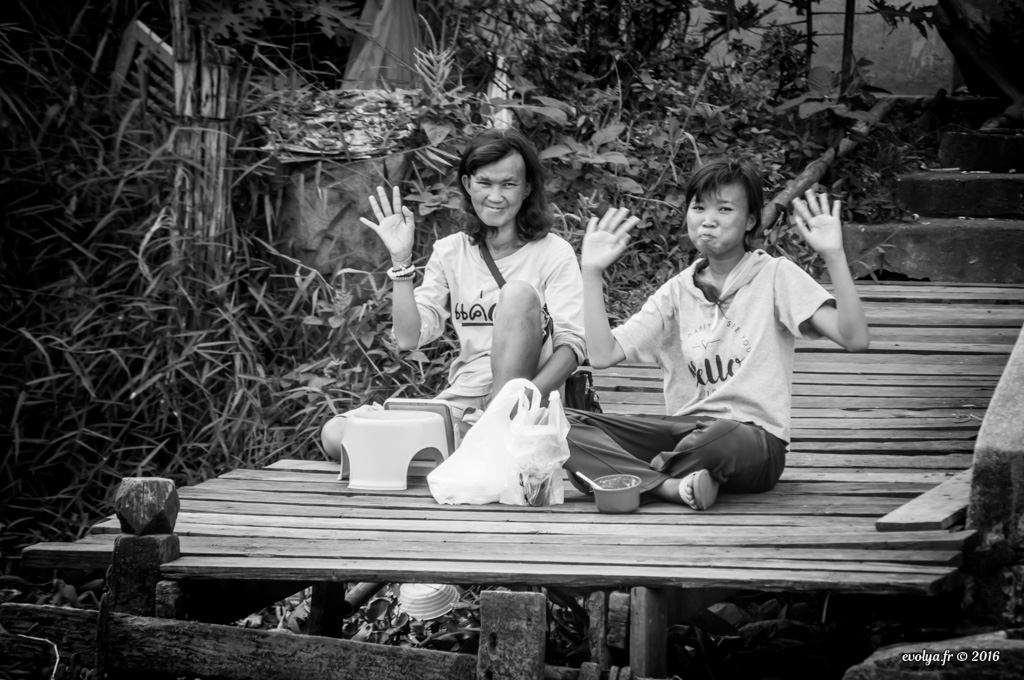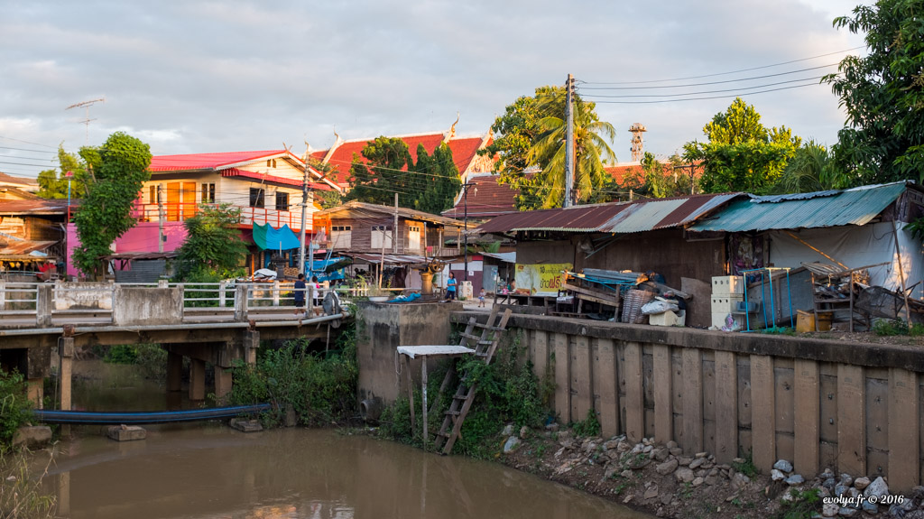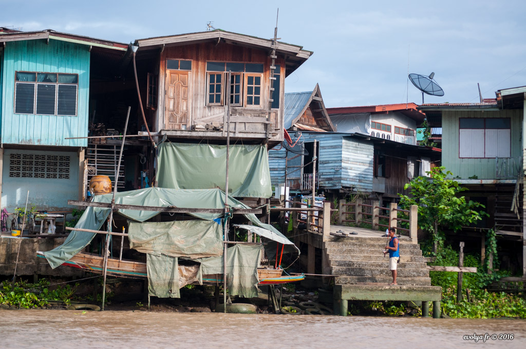 Notre guest house est une magnifique habitation traditionnelle au bord de la rivière, où se cotoient des petits bungalows en bois sur pillotis. Une fois nos sacs posés, nous partons à la découverte des quartiers environnants...