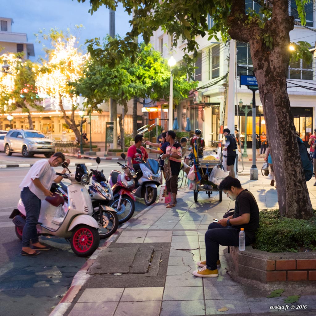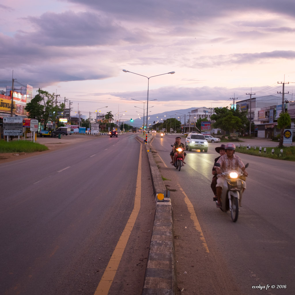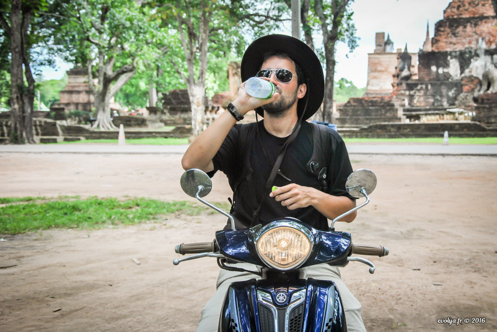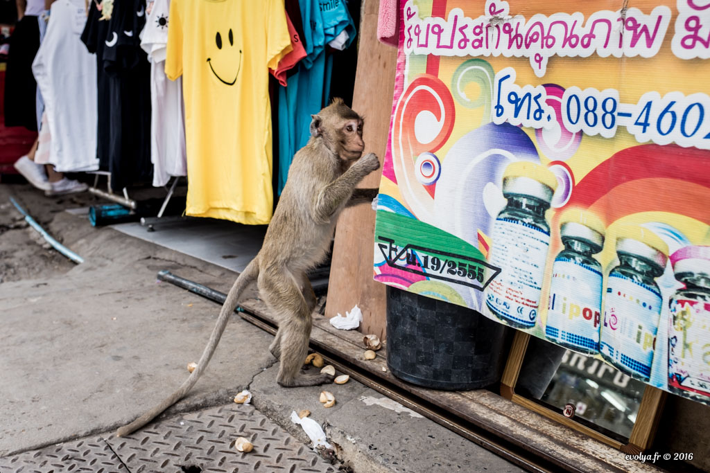 Un jour que nous visitions la ruine abandonnée aux singes au centre de la ville de Lopburi au crépuscule, nous avions laissé notre scooter sans surveillance à quelques mètres de nous.