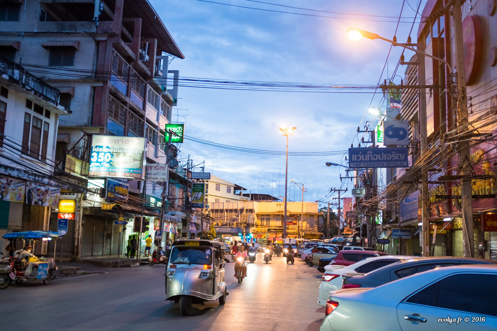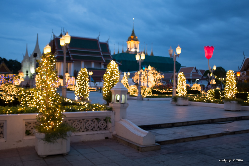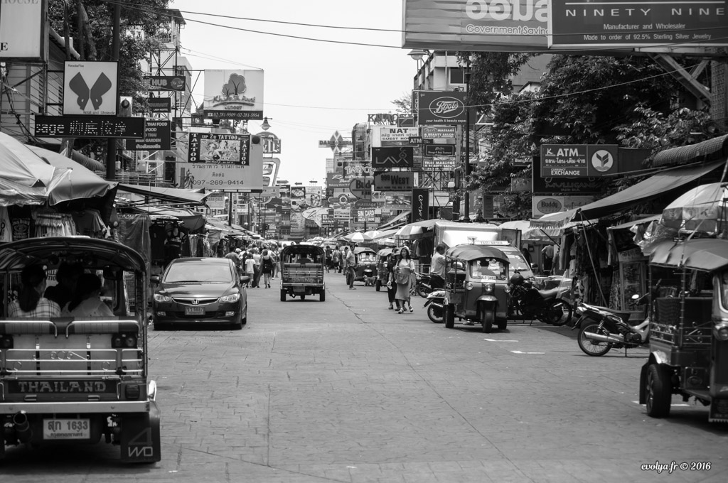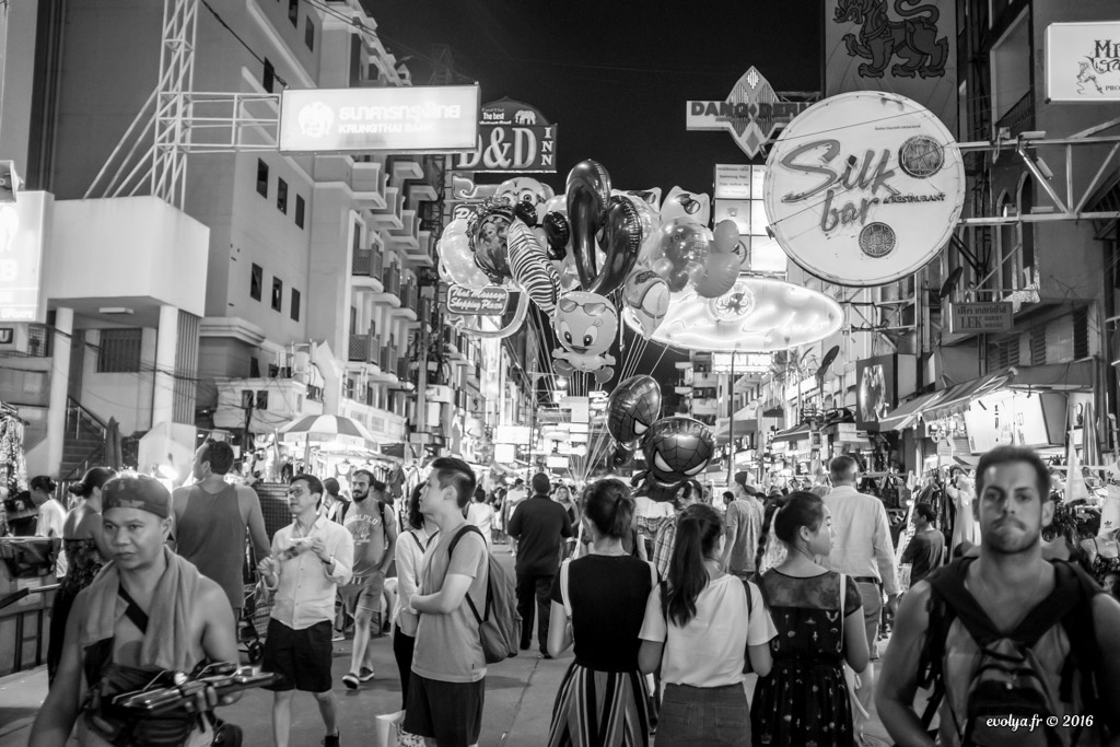 En fin de séjour nous sommes retournés vers Bangkok quelques jours avant notre départ. Notre hôtel était situé à deux pas de la très célèbre Khaosan Road, "LA" rue tendance pour les touristes de la nuit. Ambiance survoltée, musique à fond et alcool à foison font de cette rue la coqueluche des fêtards et de la jeunesse occidentalisée. L'ambiance est survoltée et donne un aperçu vibrant de la vitalité cette ville. Pour nous, ce fut aussi l'occasion de trouver les nombreux cadeaux que nous allons ramener à notre retour...