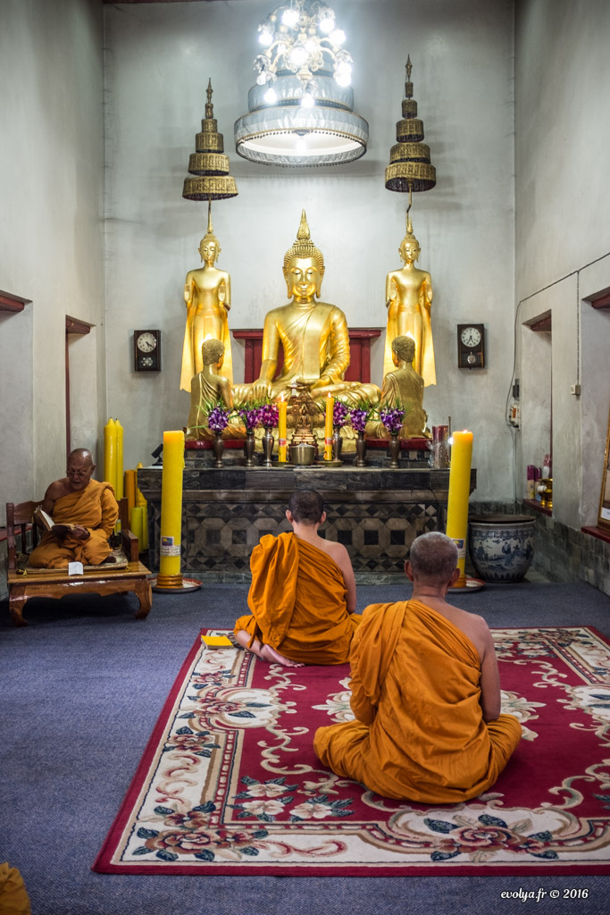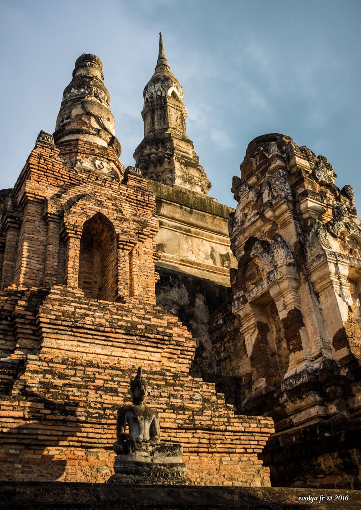 Une fois arrivés à Bangkok, nous avons eu immédiatement envie de monter vers le nord pour voir des lieux plus reculés, au calme de la campagne. Ayutthaya est une ville bien plus petite, à une heure au nord de Bangkok. Elle est connue pour ses nombreux temples.