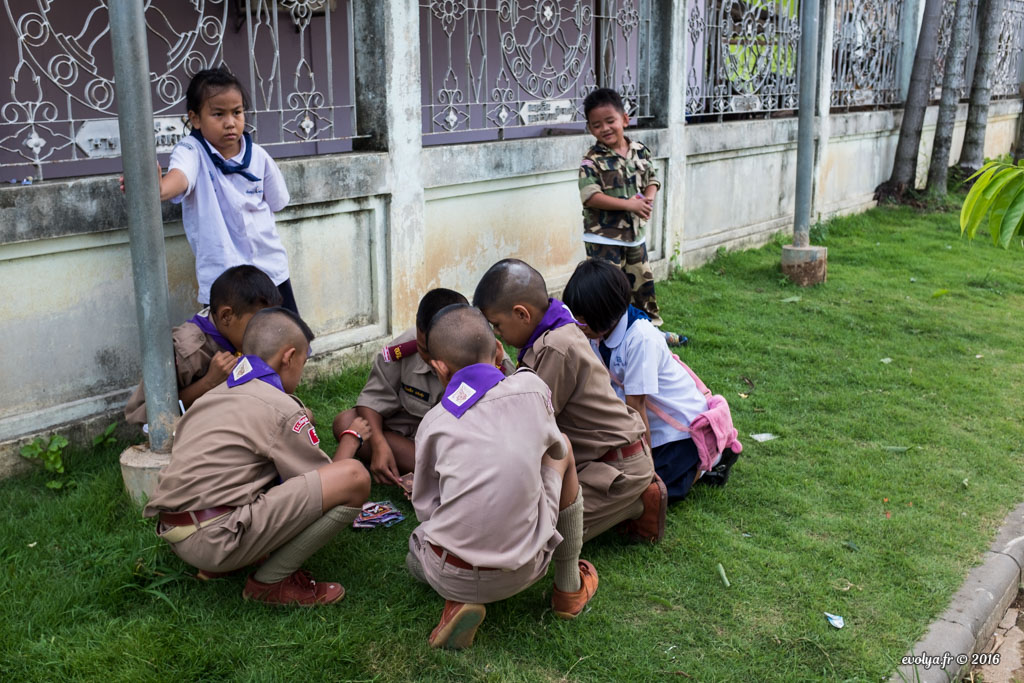 Des dizaines de commerçants vendent de quoi manger ou boire aux enfants. Cela va des traditionnelles crêpes aux délicieuses grillades. Les enfants sont ravis de nous voir et de nous montrer les quelques mots d'anglais qu'ils connaissent !