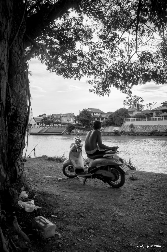La balade en bateau sur la rivière d'Ayutthaya permet d'assister aux scènes de vie quotidiennes des gens qui habitent le long de ce cours d'eau. On voit des gens pêcher dans cette eau marron, et même s'y laver. C'est aussi l'occasion de visiter les nombreux temples qui sont alignés le long de la rivière.